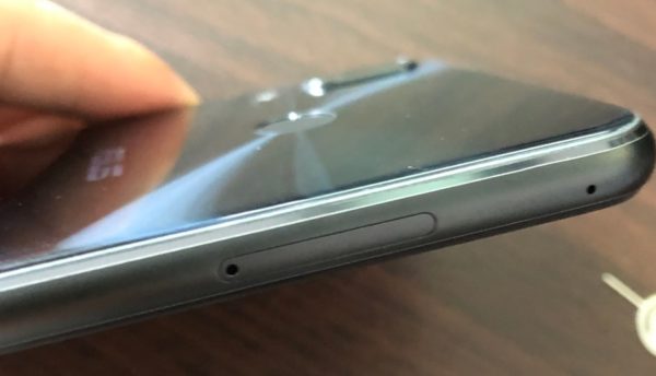 SIMカードを入れる場所はスマートフォンによって異なりますが、大体こういう細長い溝と、穴があいています。