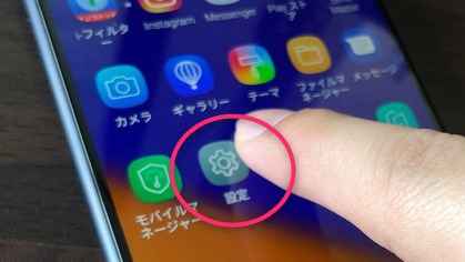 「設定」アプリを見つけて、ひらきます。指で押すとアプリがひらきます。