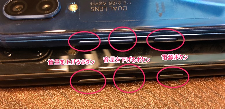 端末側面のボタンの種類:電源ボタン・音量ボタン