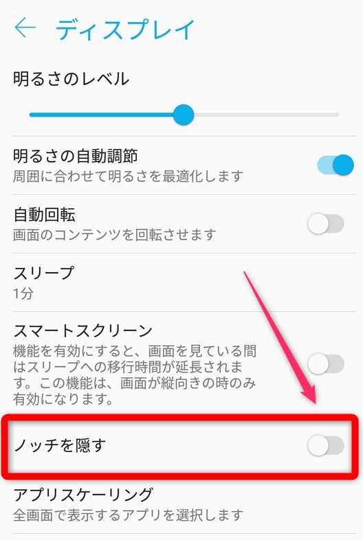 - ZenFone5(ゼンフォン)ではノッチを隠す設定ができる